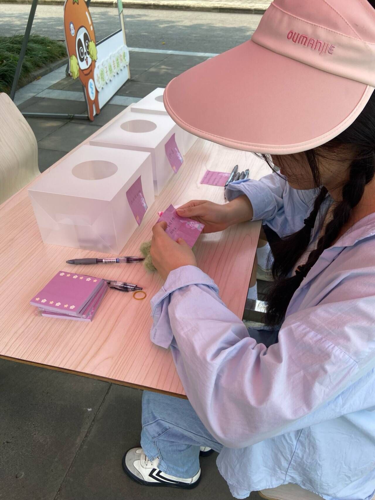 此次活动分为三个环节,各环节形式不同,但都与情绪息息相关。第一个环节是烦恼垃圾桶,即同学们在烦恼垃圾桶中写下自己的烦恼或心理困惑,同时抽取纸条为他人答忧解惑。第二个环节是日行一善,即同学们在纸条上写下日常小善事,同时抽取他人留下的小善事并完成。第三个环节是拯救不开心,即同学们在盒子中抽取暖心纸条,写下对他人的激励再放入盒中。同学们热情高涨,积极参与活动,耐心为他人解答疑惑和提供宽慰!