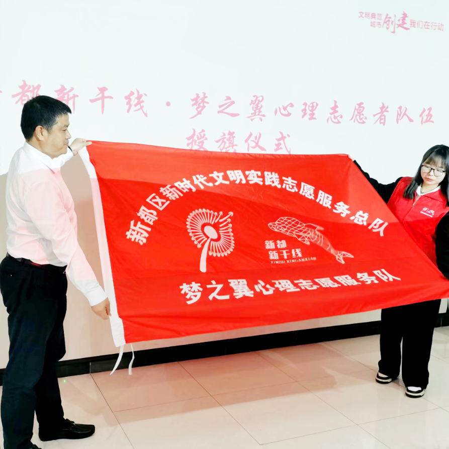 15点35分,授旗仪式开始,新都区委宣传部副部长姚永祝将新都区志愿服务旗帜授予三亿体育官网。