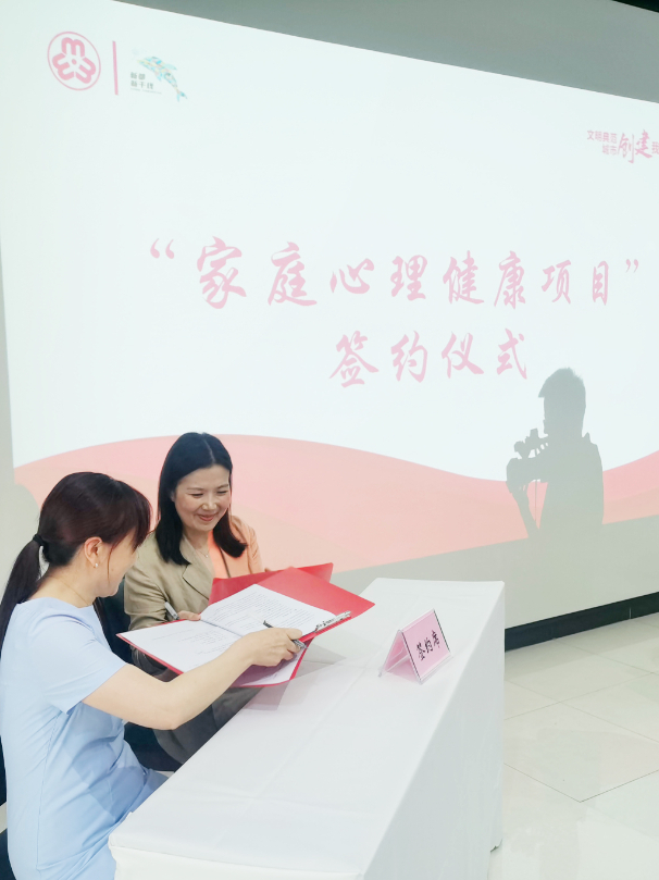 15点40分,签约仪式开始,新都区新都区妇联党组书记、主席与三亿副经理签约“家庭心理健康合作项目”。