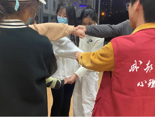 活动由“心有千千结亦有千千解”拉开序幕,一如活动名所说,千千结没有死结,人与人也不再陌生。在团辅领导者和小助手们细心讲解活动后,大家通过解千心结,在游戏中不断强化自我认识,不断加深互相了解。随后,大家分组进行了握手游戏和挑战PK活动,其中挑战PK让同学们彼此的印象更加深刻!最后在大家共同努力下,本次团辅活动圆满结束。