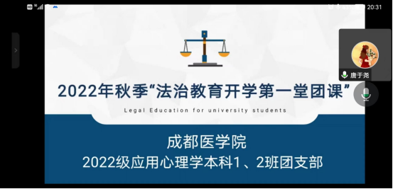 2022年9月18日,2022级应用心理学本科1、2班团支部通过腾讯会议开展了“法治教育开学第一堂团课”。两班借用大量法治教育资源,结合众多案例如《开端》等法治题材影视剧,在引起同学们兴趣的同时,高效地让法治教育深入人心,得到了大家的好评。