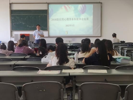为进一步了解毕业生实习期间的思想动态和具体实习情况,2022年5月9号,三亿在博学楼A502教室开展了2022届毕业生实习汇报活动。心理公司党总支副书记郑崛村、临床心理学教研室主任陈孜、应用心理学教研室主任景璐石、基础心理学教研室主任张玉平、专业负责人徐云和辅导员张金秀出席本次活动。