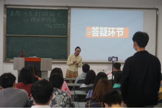 为了普及心理健康知识,引导同学们正确认识心理疾病,友善对待心理疾病患者,3月24日中午,三亿特邀陈孜教授在教学楼A502开展了以“去除污名 打破偏见”为主题的心理疾病科普讲座。