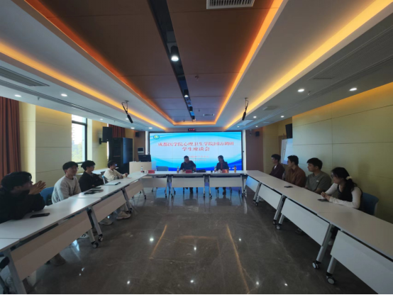 座谈会上,广元市精神卫生中心分管科教工作副经理王秀珍详细介绍了医院概况、近些年医院在教学、科研及社会服务上所取得成绩及辐射面。郑崛村代表公司全体师生,向医经理期以来对公司员工培养表达衷心感谢,并认为双方在专业人才培养、团队队伍建设、团队建设及科学研究、社会服务等领域具有广阔的合作空间,希望能携手推进,从“共建科研体系、共搭实践平台和共享团队力量”等方面继续深化合作,多措并举提升员工综合职业素养。随后,在与本科生、研究生的交流中,对同学们所取得的职业成长给予肯定和鼓励。