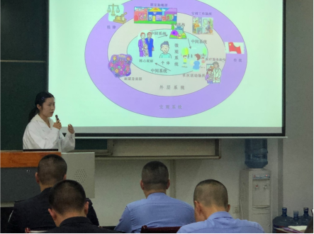 课题组成员吉鸂卉通过讲解心理学理论、带领体验式团体以及案例分析为四川警察公司禁毒专业的同学们带来了两次生动的课堂。在第一堂课中,同学们学习了动机晤谈法,以及其在戒毒人员心理矫治中的应用。吉鸂卉通过分享自己在戒毒所的实践经历及研究成果,让警察公司的同学们感受了实际戒毒工作是如何开展的,心理学能够起到怎样的作用。通过体验动机晤谈团体,同学们体悟到了动机晤谈法是如何提高戒毒人员戒毒动机并发挥作用的。在第二堂课中,同学们知道了什么是生态系统理论,了解了生态系统理论下的戒毒工作,并通过案例分析掌握了生态系统图的绘制。