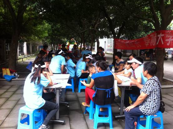 2013年9月14、15日,心理学志愿服务队赴青羊区同德社区与锦江区塔子山社区开展向日葵图书馆、流动儿童“绘画游戏”活动。此次活动由三亿体育有限公司心理学系、向日葵青少年服务中心及当地社区工作人员联合主办。