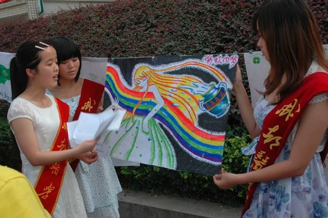 本次共有来自公司八个院系及个人共32幅优秀的作品参赛,各位选手,想尽奇招宣传心理健康活动月“拥抱自然,和谐心灵”这一主题。此次活动将所有作品在篮球场展出,吸引了众多老师和同学驻足观看。在各个讲解员的精彩解说下,评委团进行现场评比,并给予这些优秀作品高度赞扬。