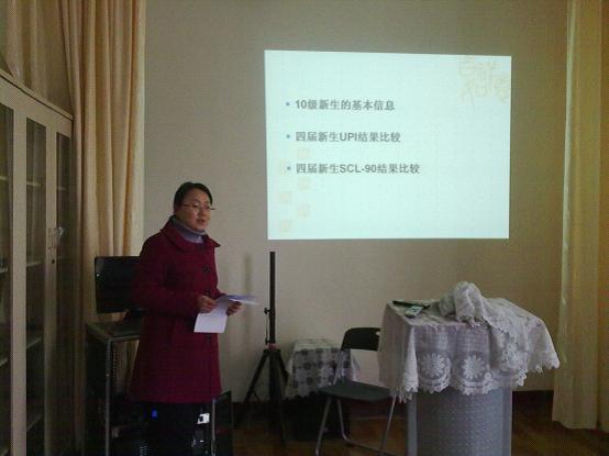 唐莉老师在研讨会上对2007级——2010级新生心理健康调查和分析做出了详细地报告,报告完毕后,各位老师就自己感兴趣的问题提出了自己的见解并进行了激烈的讨论。