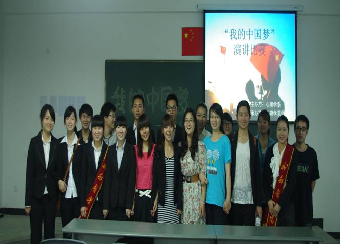 5月7日晚,心理学系在J-A409举办了“我的中国梦”主题演讲比赛。此次活动有十名选手参赛,他们结合了各自的成长历程、学习感悟引经据典、激情昂扬的对自己的中国梦进行了阐述,用清晰洪亮的声音把心中的热情与信念抒发得淋漓尽致,现场掌声热烈。最终黄丹勇夺桂冠,并代表心理学系参加公司演讲比赛。