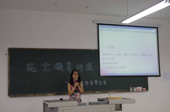 雅安4.20地震发生后,全校师生通过各种方式表达了哀思和关注。为了普及死亡教育,增强老员工的心理承受能力,营造积极向上的学习、生活氛围,4月26日晚,心理学系在教学楼B302教室举办死亡教育讲座,荣幸邀请了人文信息管理公司何则阴老师作为活动主讲,陈晓勤教授、孙璐老师、郭茂林老师作为活动嘉宾。