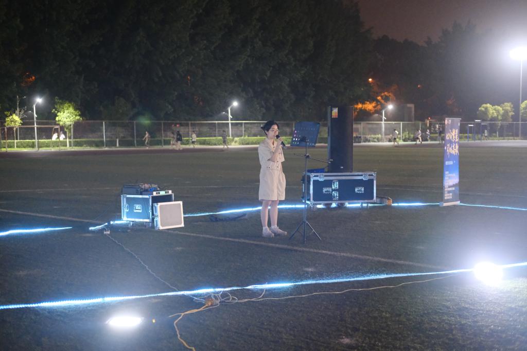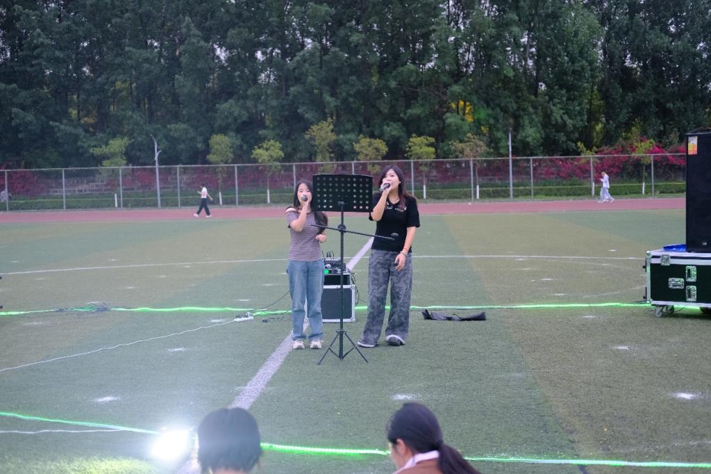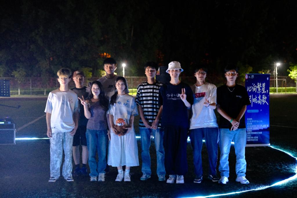 压轴曲目《dream is possible》点燃全场激情,同学们共同高歌“我相信我能触摸天空”,挥舞的手机灯光汇成银河,将“追梦”的信念烙印在夜空。穿插其间的猜歌名小游戏妙趣横生,为音乐节更添一抹亮丽色彩。摄影师镜头里,有闭眼沉醉的面庞、相视而笑的同学,更有工作人员穿梭的身影——这场音乐节不仅是一场视听盛宴,更是一次心灵共振的集体疗愈。